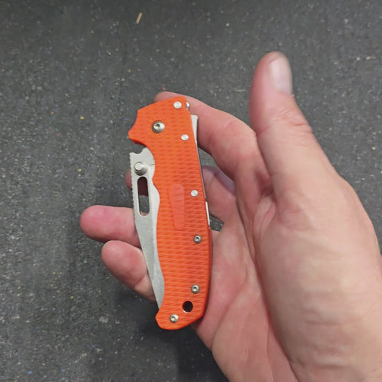 The Demko Knives AD20.5 is a top-quality folder at a fair price. It is as fun to fidget with as it is practically functional, which is largely thanks to the Shark Lock: a radical new system that provides solid lockup and can be trusted to keep your fingers safe. The lock is operated by pulling the fin back with your thumb or index finger—a motion similar to using a flipper opener. When the blade is locked open, the fin serves as a comfortable thumb ramp, which is jimped to increase your control over the knife. Additional jimping on the spine and a high grip option also contribute to the pocket knifes usability.